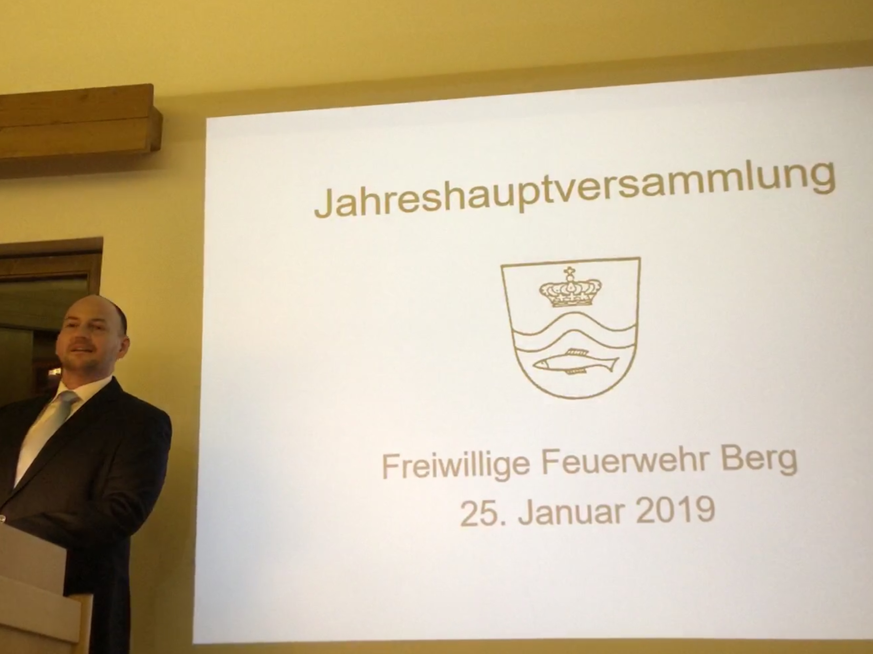 Kommandant und Kreisbrandmeister Tobias Völkl-Mirlach erstattete im Anschluss seinen Bericht, bei dem er aus Zeitgründen nur auf die wichtigsten Punkte einging. 112 (!) Einsätze hatte die FFW Berg in diesem Jahr – inklusive 16 Einsätze des First Responders. 6 Personen wurden gerettet, ein Mensch konnte nur noch tot geborgen werden. Ungewöhnlich große Einsätze gab es bei den Bränden in Leoni, im Mantel und in einem Privathaus in der Berger Ortsmitte. Der Durchschnitt lag bei 2,15 Einsätzen pro Woche. Besonders erwähnte Tobi Völkl die vielen Übungen und Ausbildungsstunden, die in der Berger Wehr investiert wurden. Sein Wunsch an die Gemeinde wäre ein hauptamtlicher Gerätewart für die Berger Wehren.