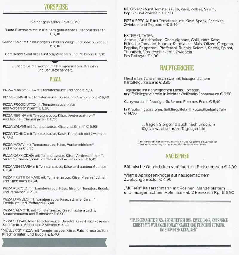Die neue Pizzakarte von “Müllers auf den Lüften”
