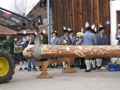 Farchach vor gut einer Woche: Der Baum kommt ins Dorf. Dieses wunderschöne Bild entnahmen wir der Internetseite der Burschenschaft (vgl. die Linkliste rechts); die Allmannshauser sind digital noch etwas zurückhaltender.