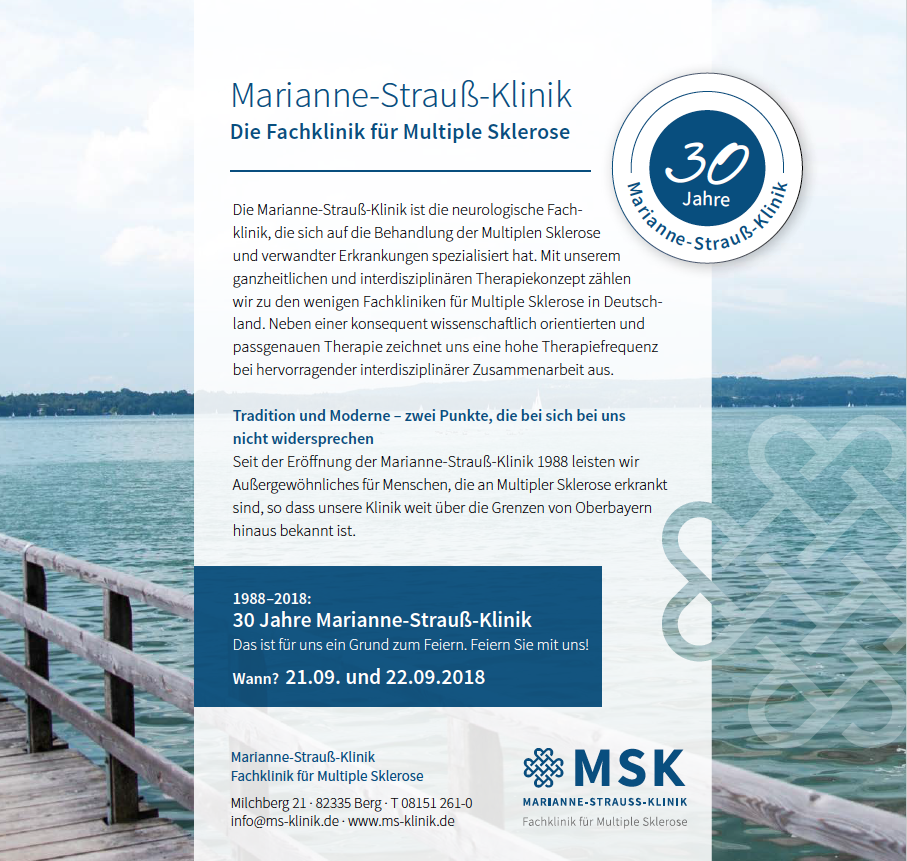 Die Marianne-Strauß-Klinik hat uns gebeten, schon jetzt auf ihre Feier des 30-jährigen Bestehens hinzuweisen. Wir veröffentlichen das Plakat und die Einladung zum Mitfeiern sehr gerne.