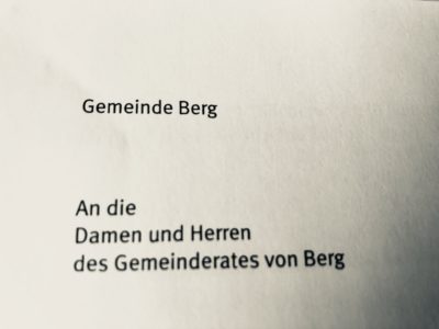 Der Finder möge es bitte bei der Gemeinde in Berg abgeben oder direkt bei