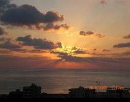 Die Geschwister, Sonnenuntergang über dem Meer vor Beirut