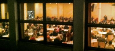 … wurden wir als QUH wir etwas traurig über diese antiquarische Art von Politik, die einen brillanten Kopf in einen scheußlichen Zwecksaal vor ein hauptsächlich männlich ergrautes Publikum steckt, dazu Blasmusik spielt und Bier ausschenkt (danke, hat gut geschmeckt) und sich am Ende trotzig selbst applaudiert. Also: Gut gebrüllt, Peter! Wir schreiben unterdessen weiter …