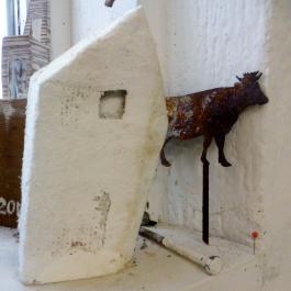Immer wieder für eine fröhliche Überraschung gut ist auch Sebastian Heinsdorff in Icking: neben vielen, vielen Kuh-Bildern hat er aus Schubkarren einen haushohen Brunnen namens “Reinfall” gebaut, den er auch “verleasen” würde. In Hof warten derweil lustige Tiere wie der “Nullbock”. Referenz an das Thema der Ateliertage: Tiere. Und was es nicht alles für Tiere gibt.