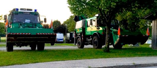 Mit Baggern gegen Spatzen? – Polizeifahrzeuge aus NRW in Aufkirchen