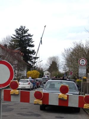 Nicht nur die steigenden Temperaturen deuten darauf hin, dass der erste Mai näherrückt. Auch die Maibäume – wie hier sogar traditionell mit Muskelkraft im benachbarten Wangen – gehen langsam aber sicher in die Vertikale.