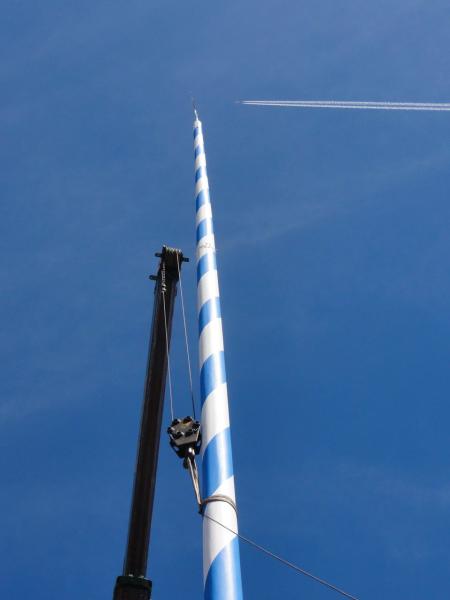 Wie eine 1 steht er nun da, der Berger Maibaum.