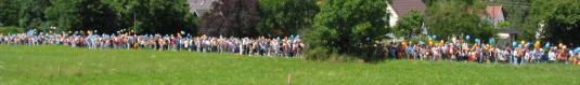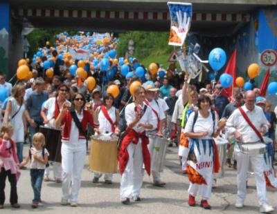 “Eindrücklich war die Resonanz auf den Aufruf zur Demo: nicht die erwarteten 2000 Teilnehmer waren erschienen, sondern mehr als 4000! Von einer Samba-Trommelgruppe angeführt zogen alle friedlich vom Sportplatz zum Weßlinger See, viele mit einem Luftballon in der Hand.