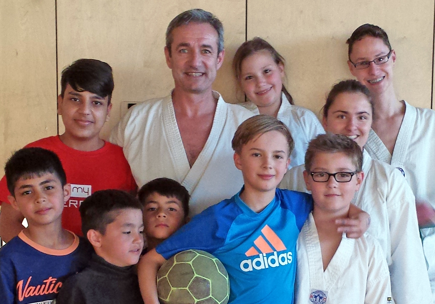 Stefan Rudolf und die Kinder beim Taekwon Do