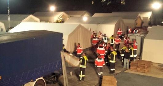 Betten und Kühlschränke stehen zum Teil bereits in den Zelten