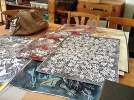 Das Rahmenthema soll aber auch jeden einzelnen Künstler zu einer eigenen Interpretation inspirieren. Teresa Erhart geht mit ihrem Kunstwerk ganz an den Anfang unserer Schöpfung zurück. Wertstoff zerlegt sie in Stoff und Wert. Den Stoff wert schätzen. Wert schätzen, was da ist. Für sie ist Öl einer der spannendsten Wertstoffe unserer Schöpfung. Entstanden ist Öl aus Pflanzen, nicht selten Wasserpflanzen, die faszinierend bizarre Formen annehmen können und so begann sie sich zeichnend dem Thema anzunähern. Aus katholischem Elternhaus stammend kommt einem dann auch schnell die Genesis in den Kopf und so entstand Teresas Werk – der “Schrein des dritten Tages” (s.o.).