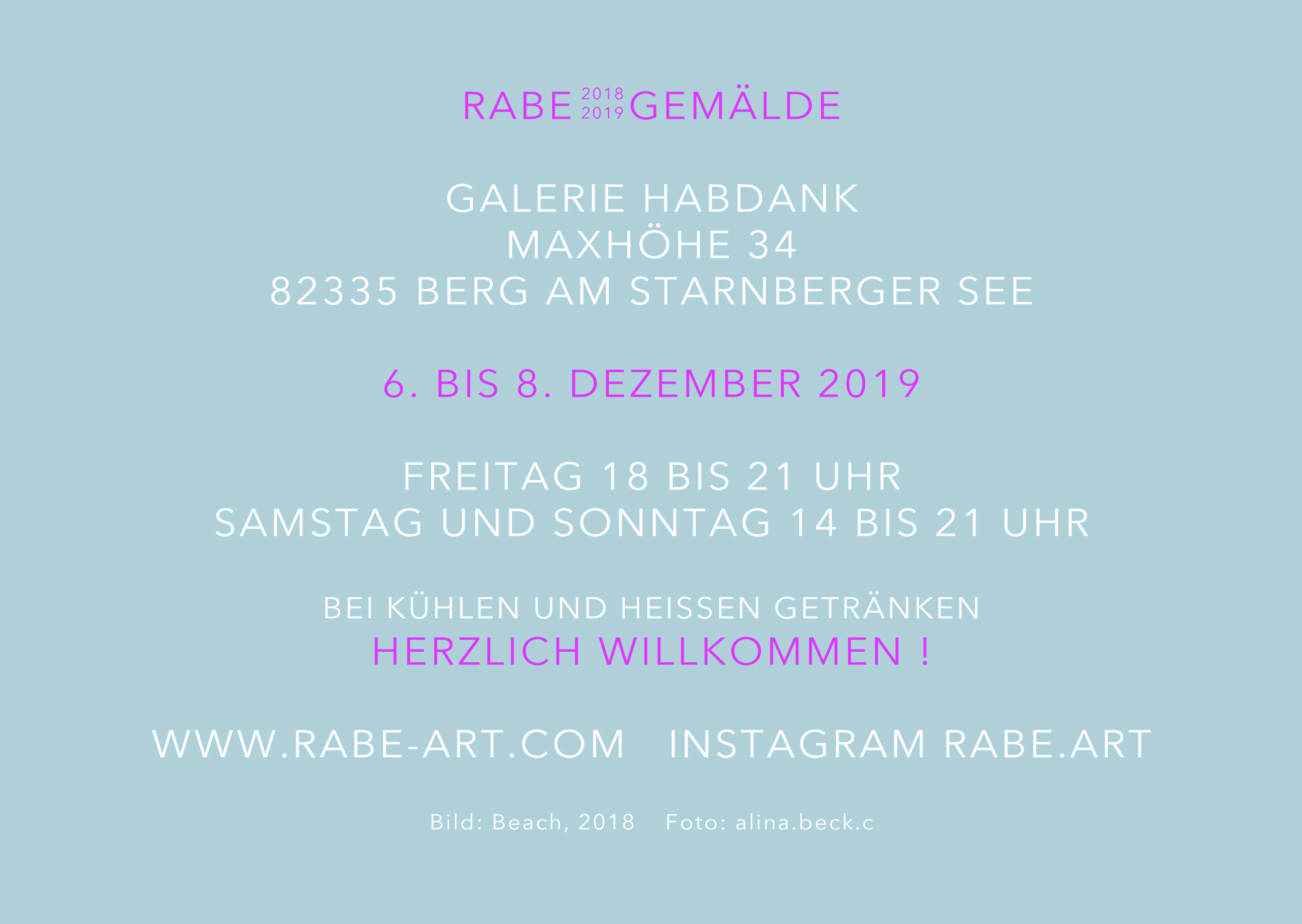 Öffnungszeiten: Freitag, 06. Dez, 19:00 – 22:00 (Vernissage), Samstag    07. Dez 19, 12:00 – 16:00, Sonntag, 08. Dez 19, ab 12:00,  Freitag, 13. Dez 19, 19:00 – 22:00, Samstag, 14. Dez 19, 12 – 16 Uhr, Sonntag, 15. Dez, ab 12 Uhr.