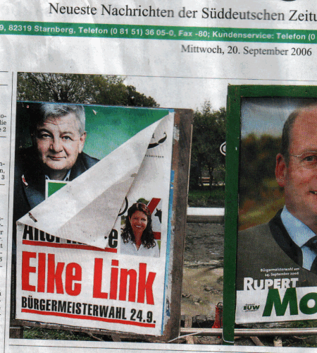 Nachdem der frische Wind, das himmlische Kind, unser Wahlplakat wie eine Sardinendose aufgerollt hat, ist es nun weithin sichtbar – wir bedanken uns daher an dieser Stelle ausdrücklich bei den Grünen und der CSU für die freundliche Überlassung der Plakatständer! Als so junge Wählervereinigung haben wir nämlich noch keine eigenen. Mal sehen, wer da noch so alles herauskugelt!
