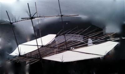Die aus Künstlern und QUH-Aktivisten bestehende Jury wählte Dazze Kammerls poetische Flug-Konstruktion aus heimischen Bambusstöckchen und brutalen Kabelbindern, die den Marstall optisch beherrschte, einmütig zum diesjährigen Preisträger. Umgehend bekam Dazze auch den Preis überreicht: den mittlerweile begehrten “feuchen Händedruck” von Elke Link.