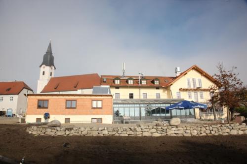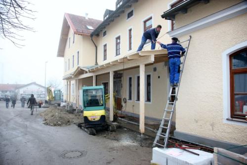 Fast fertig sind der Wintergarten und der Anbau an den Saal für die Büroräume.