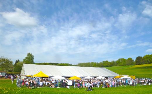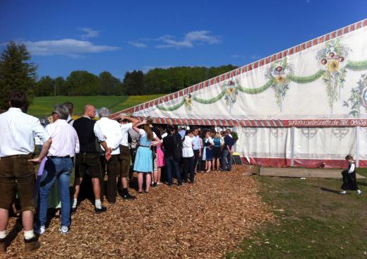 Noch größer als erwartet ist der Ansturm: Schon kurz nach dem Maitanz bildete sich vor dem Zelt eine lange Schlange … am Nachmittag wurde der Einlaß zeitweise ganz gesperrt.