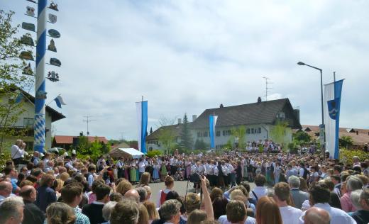 Bei idealen Wetterbedingungen (fast a bisserl warm is) nimmt das Berger Maifest unter weißblauem Himmel bei hochsommerlichen Temperaturen seinen erwarteten Verlauf: Es ist ein gigantischer Erfolg. Mit dem traditionellen “Tanz um den Maibaum” eröffneten die Berger Burschen und Madeln um 13 Uhr die Festivitäten.