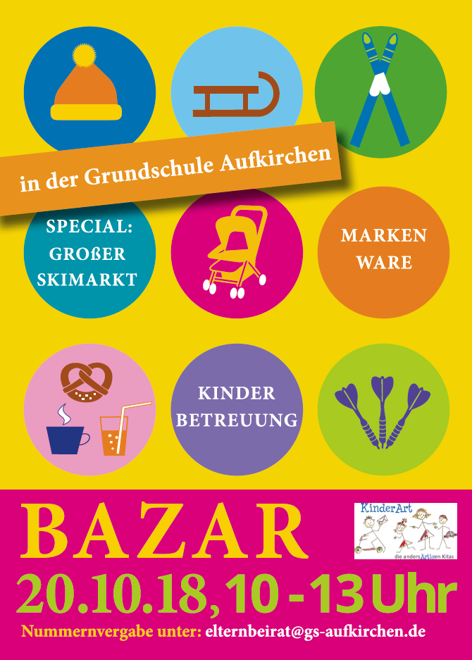 Es ist wieder soweit: Am Samstag, den 20. Oktober 2018, findet von 10-13 Uhr der beliebte Kinder-Bazar für Herbst & Winter in der Oskar-Maria-Graf Grundschule in Aufkirchen statt.