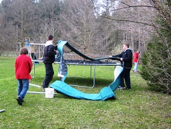 Beim TC Berg in Höhenrain wurde Laub und Müll eingesammelt, das Trampolin aufgebaut und