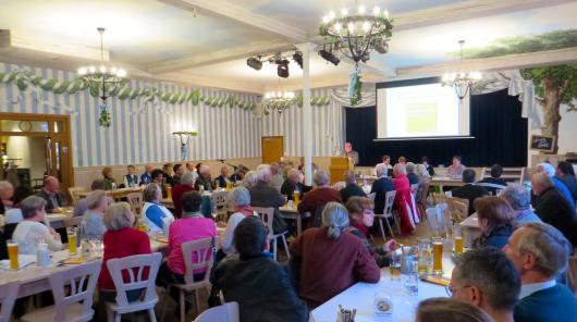 Bürgermeister Monn trägt nun Statistisches über die Gemeinde Berg vor. Nach der Pause sind das Grußwort des Landrats sowie die Beiträge der Gastredner vorgesehen, danach sind die Fragen der Bürger zugelassen.