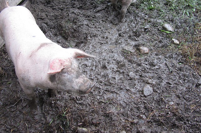 09.07.14 – Weiterhin: Regenjacke ist Trumpf Wetter ist ja bekanntlich Ansichtssache. Heftigen Widerspruch wird man kaum ernten, wenn man das dieser Tage vorherrschende Klima ein Sauwetter schimpft. Die Schweine am Münsinger Dorfanger sind aber, der Versenktiefe des Rüssels nach zu urteilen, eher der Meinung: saugute Bedingungen! |