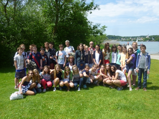 Am Samstag Morgen führte uns Herr Liebl persönlich durch die Schule und Geschenke wurden ausgetauscht. Danach liefen wir bei herrlichstem Sonnenschein am Starnberger See entlang, machten an einem Steg Halt und ließen uns die Brotzeit, die Herr Hlavaty vom Sportverein Berg organisierte, schmecken.