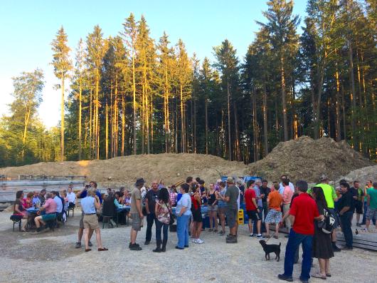 Mit dem schönen Begriff “Betonierbier” ist dem Geschäftsführer der Berger Windkraft GmbH Robert Sing wahrscheinlich eine Worterfindung, ein “Neologismus” gelungen. Sucht man jedenfalls im Netz nach diesem Begriff finden sich nur Hinweise auf die gestrige Veranstaltung in den “Wadlhauser Gräben”, wo Investoren, Gemeinderäte und Bauarbeiter zusammen bei an mittlerweile fertiggestellten Fundament der WKA 3 zusammen feierten.
