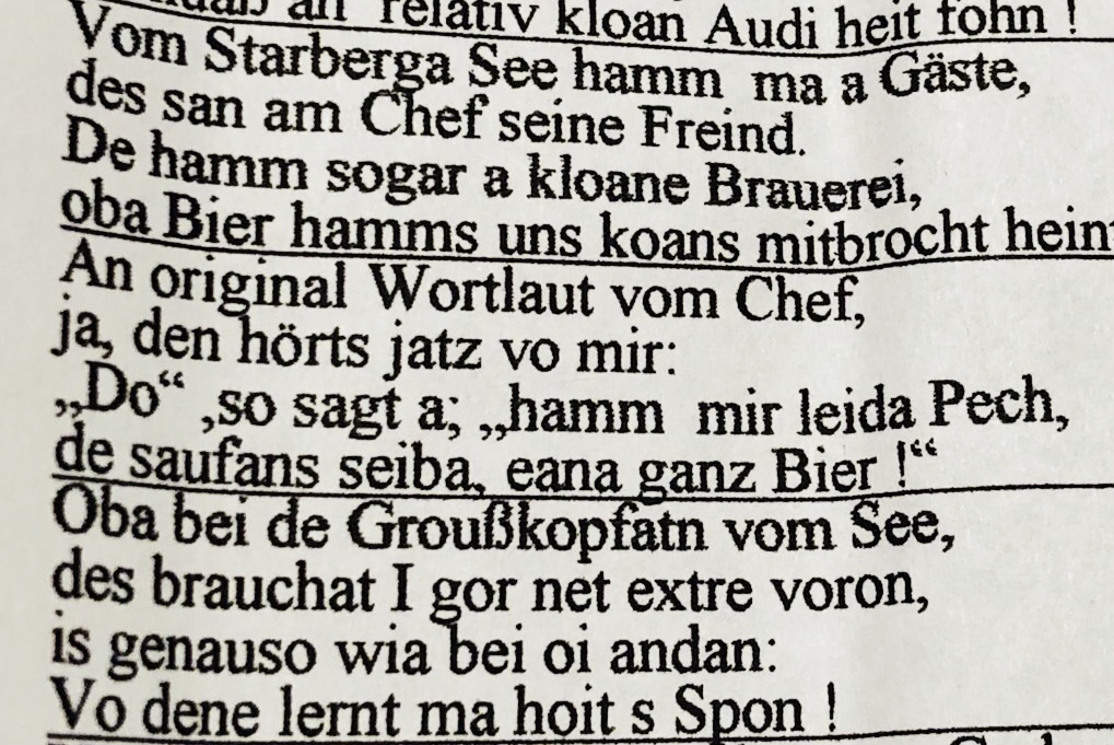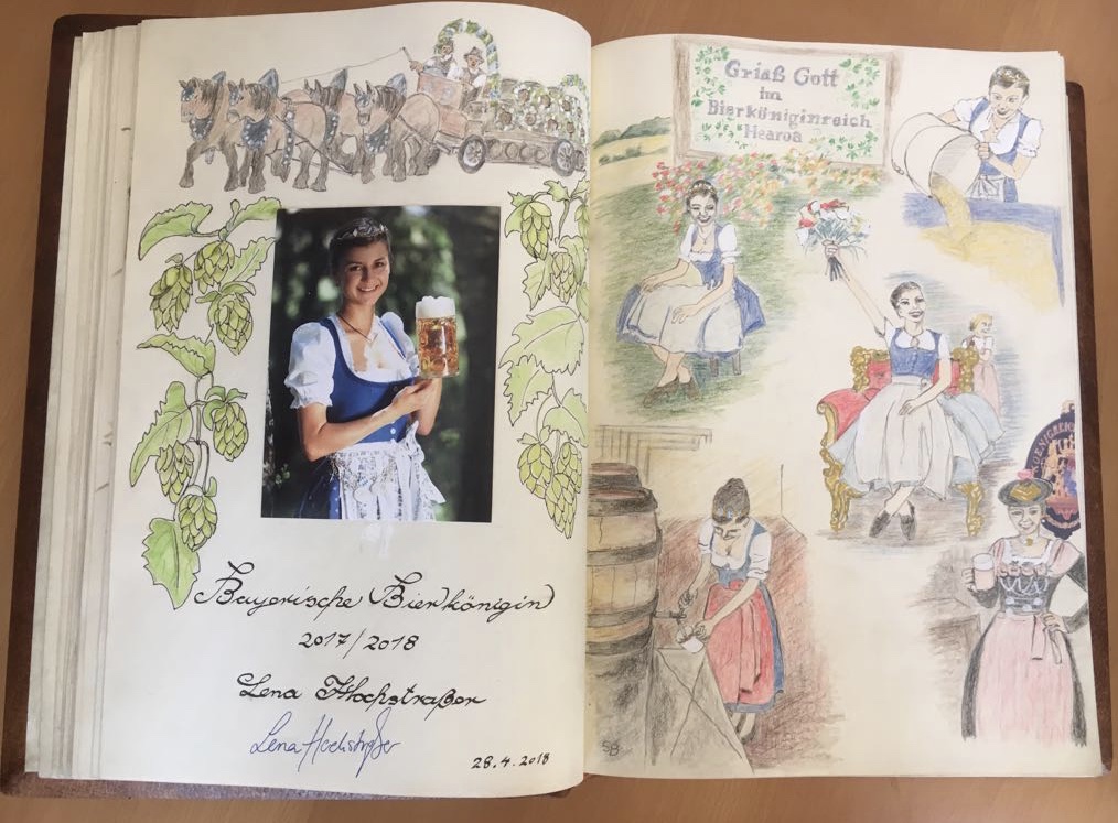 Lena Hochstrasser, der amtierenden Bierkönigin aus Höhenrain, sollte heute eine große Ehre zuteil werden. Weil Lena in ihrer Funktion als Bierkönigin unsere Gemeindeweithin bekannt gemacht hat (sie war zum Beispiel in Russland, China oder Beirut und hatte Kontakt zu Politikern und Wirtschaftsgrößen), war für heute um elf Uhr ein Termin im Rathaus vereinbart: Sie sollte sich ins Goldene Buch der Gemeinde Berg eintragen. Lena reiste pünktlich mit ihren Eltern Josefine und Helmut an und wurde von 1. Bürgermeister Rupert Monn empfangen. Allein – das Goldene Buch war “weg”. Große Ratlosigkeit, große Aufregung.