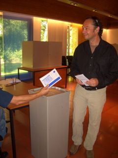 Da freuen sich auch zwei! QUH-Schriftführer André Weibrecht und Gemeinderat Robert Schmid als Wahlhelfer.