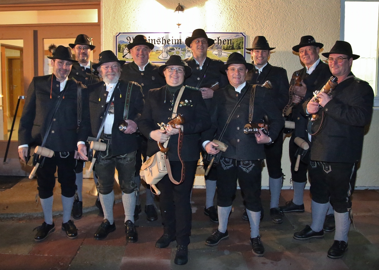 Die stolzen Aufkirchner Böllerschützen mit ihrer “Henne im Korb” Anke Sokolowski (Photos: HP Höck)