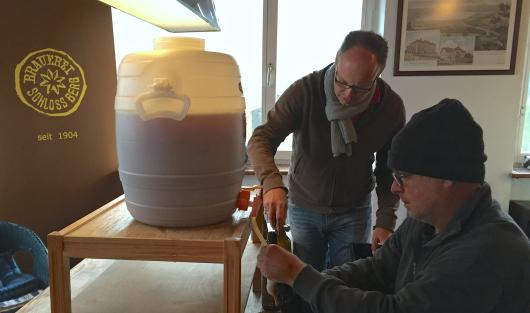 Das Gegenteil von High-Tech: gemeinsames Abfüllen per Hand in der “Brauerei Schloss Berg”