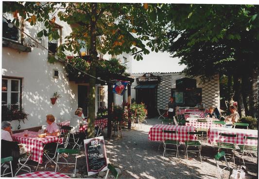 “Das Bier schmeckt gut hier” (Oskar Maria Graf) – die Gaststätte “Brauerei Schloss Berg” in einer kolorierten Photographie um 1908