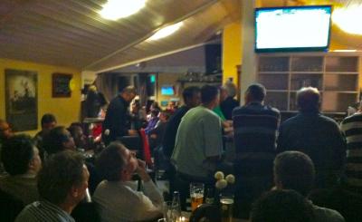 Der einzige, der sich an dem Tag von einem Ohr zum anderen freute, war Bernd, der Wirt, der stolz war auf seine über 100 Gäste. Auch Josef Brustmann war dort – ich habe ihn gleich mit den anwesenden Burschen für die Ankündigung seines Auftritts im Berger Festzelt (siehe unten) fotografiert. Letzte Station des Triathlons: Auf dem Heimweg noch ein Kurzbesuch in der Berger Wachhütte, die ein richtiges kleines Ortszentrum auf Zeit ist. Geschlechterverhältnis jetzt wieder ausgeglichen.