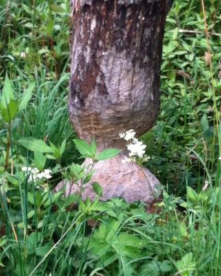 Kapellenweg, Annakapelle, Martinsholzen, vorbei an den stetig knabbernden Bibern. Wir treffen auf eine Radlergruppe des ADAC Südbayern (offenbar kein Widerspruch in sich), die am Bachjägerweg rastet. Gleich werden wir netterweise mit Würstchen und Schokolade gefüttert.