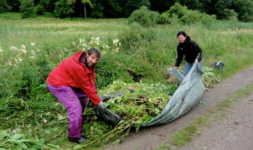 Morgens um neun zum Springkrautzupfen am Lüssbach – hier bei Station zwei kurz vor Martinsholzen mit Peter Drefahl vom Landratsamt. Wir erinnern uns an die Geschichte, die uns Gerd Jäger 2008 fürs QUH-Blog erzählte: Die Neophyten und der kleine Depp.