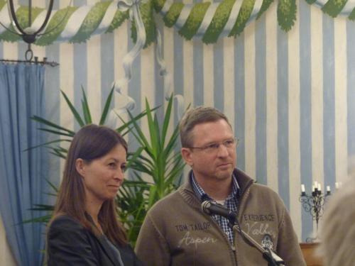 Junge Mütter werden angekündigt – Dr. Patrick Raithel tritt vors Mikrofon – Nicole van der Mey unterstützt ihn aber sogleich, bald kommt auch Sigrid Sebottendorf dazu.