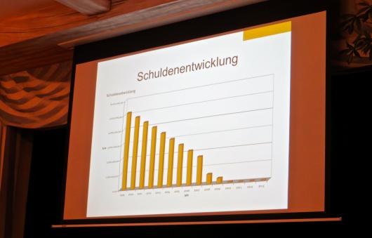 Es wird den Betrieben gedankt, die die Gewerbesteuern zahlen, und noch einmal auf die Veranstaltung “Berger Betriebe laden ein” hingewiesen. Fazit: “Die Gemeinde Berg steht finanziell gut da.” – Es folgt die Lieblingsgrafik, auf die man zu Recht stolz sein kann: