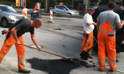 Unterm Asphalt liegt das Loch. Notdürftige Ausbesserungen.