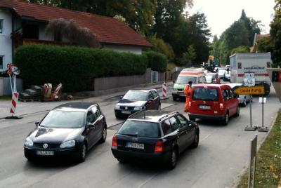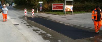 Zum Verkehrschaos kommt es heute in Berg. Gerade noch rechtzeitig vor Winterbeginn bessert das Straßenbauamt endlich die Winterschäden auf der Ortsdurchfahrt aus (die nächstes Jahr hoffentlich – samt einer Halballee und neuem Radfahrweg – ganz saniert werden wird).