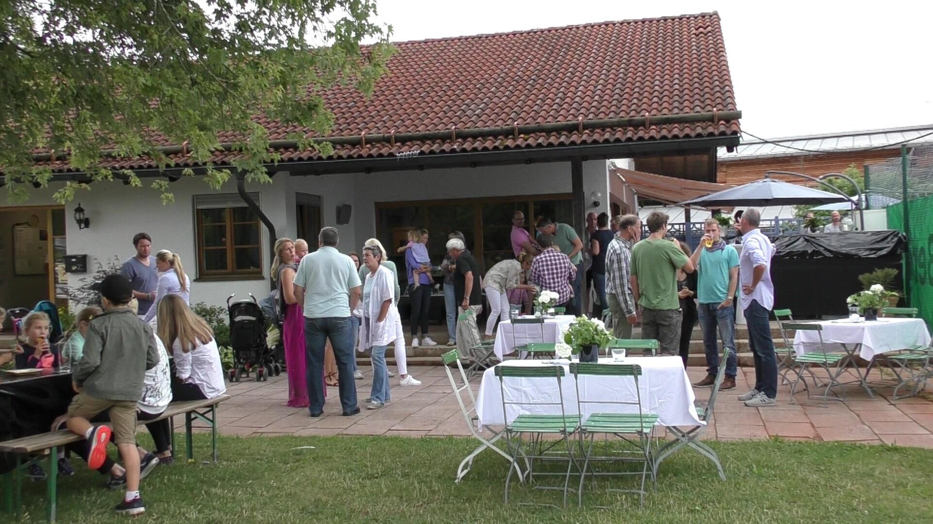 Ab Sonntag 14 Uhr folgte bei stabilem Wetter das große Sommerfest 2017 mit rund 60 Teilnehmern. Thomas Hess, der Vorsitzende des neuen Vorstandsteams, begrüßte alle Tennisfreunde und anwesenden Gäste, das Trainer-Team um Kacper Cecek und wünschte einen guten sportlichen Verlauf der weiteren Tennissaison 2017. Turnierleiter Hellmut Frank würdigte die beiden Clubmeister nochmals gesondert.