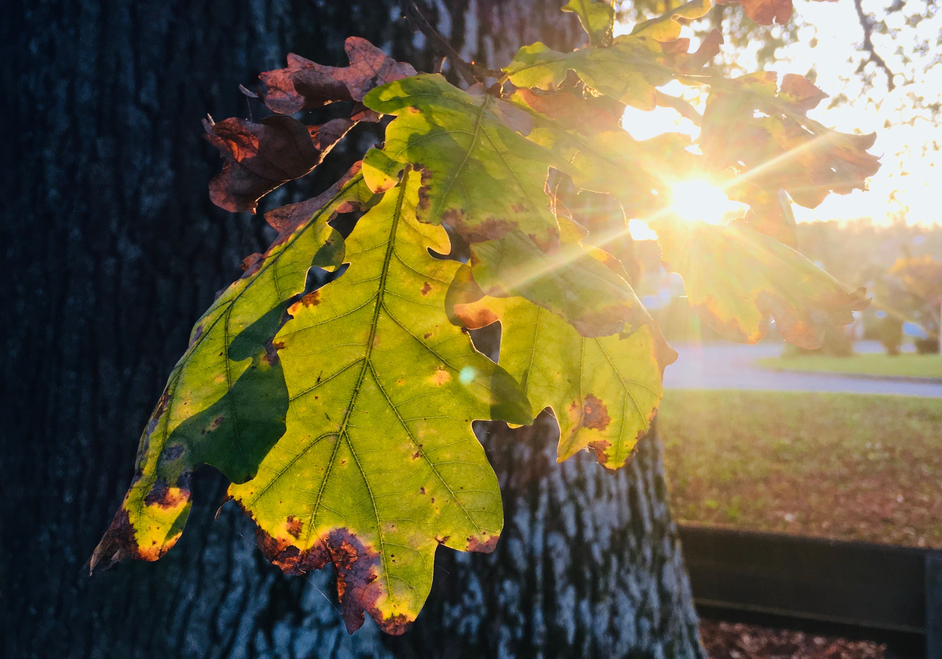 Typisches Blatt einer Stieleiche im herbstlichen Gegenlicht