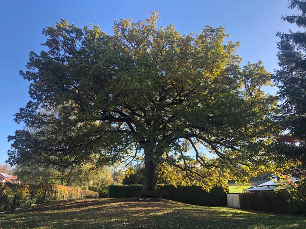 Die Berger Eiche auf dem ihr eigenen Grundstück