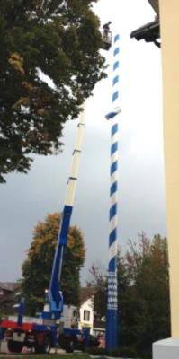 das höchste Bauwerk der ganzen Gemeinde, der Maibaum, mußte wegen Auflagen von Landratsamt und TÜV nach vier Jahren turnusmäßig gefällt werden. Der Baum selbst hat ein reiche, aber nicht unbedingt “ruhmreiche” Geschichte: erst schafften es die Aufkirchner 2010 nicht, eine Maifeier zu veranstalten. Dann wurde ihnen von den Germeringern auch noch der 32 m hohe Baum, der in Berg gelagert worden war, geklaut: im Blog findet sich die peinliche Geschichte von Diebstahl und Auslösung hier: