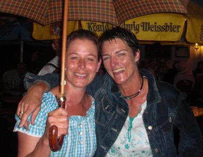 Im Regen: Steffi und Irmi