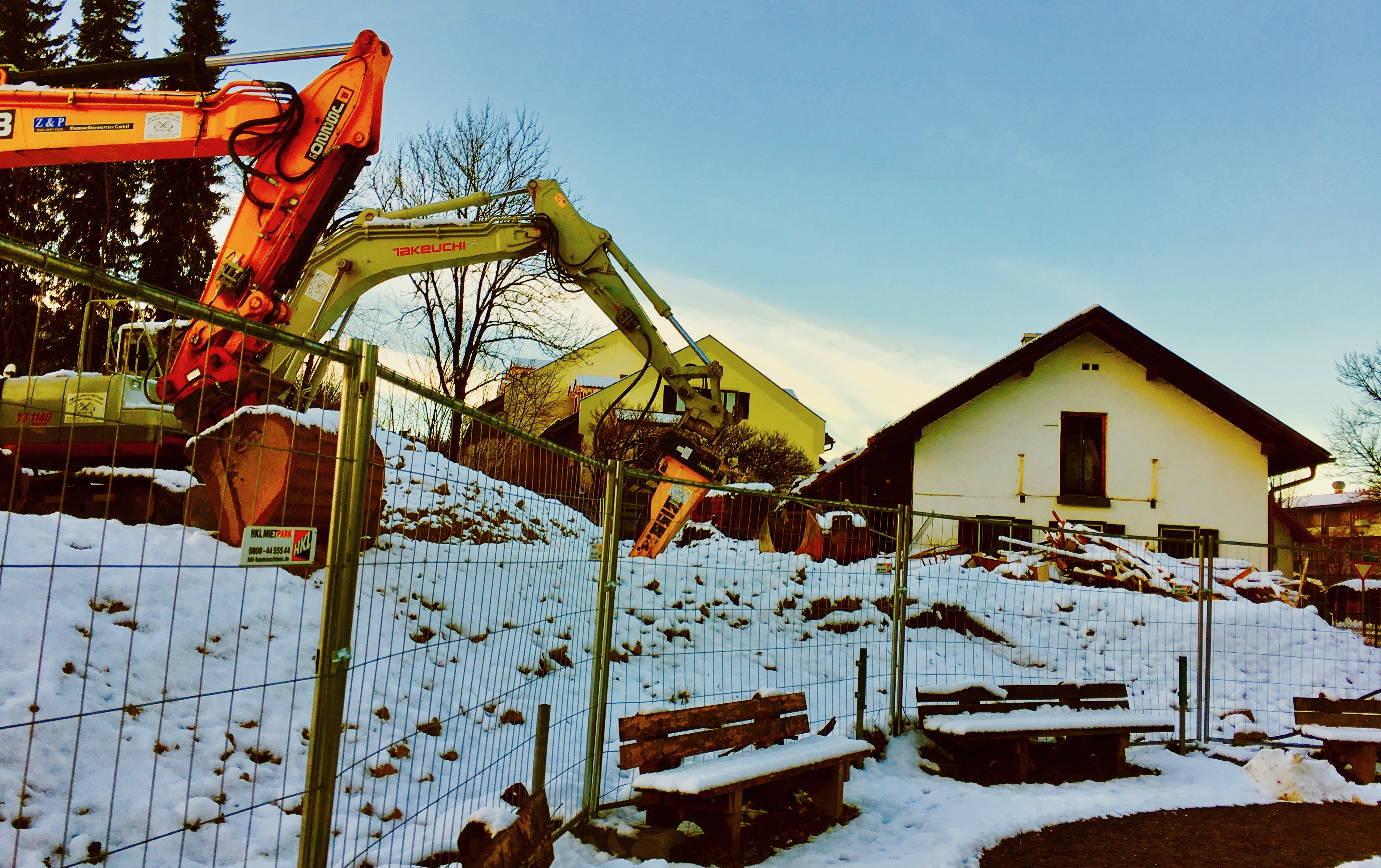 Es besteht also endlich die große Chance, dass sich im Herzen von Berg ein kleines, lebendiges Ortszentrum bildet: Apotheke, Bäckerei, gegenüber die Postfiliale und (hoffentlich weiter) der Buchladen, eine Galerie, sowie zwei, drei neue Läden inklusive einer kleinen Gastronomie … das klingt fast schon nach einer richtigen Ortschaft. Dazu gehört auch, dass der Bauherr den König-Ludwig-Brunnen, der sich obskurerweise teilweise auf seinem Grundstück befand, notariell bereits der Gemeinde überlassen hat, hier also auch ein öffentlicher Raum entstehen wird, der gar zum Verweilen einladen könnte.