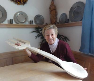 Also schreiben wir einfach nur, dass Roswitha jeden Samstag in ihrem Geburtshaus die Familien ihrer beiden Töchter zum Frühstück empfängt, die ebenfalls in der Gemeinde leben. Und weil es mit so vielen Gästen manchmal schnell gehen muss, empfiehlt uns Roswitha ein Rezept ihrer Schwiegermutter: einen ganz einfachen Honigkuchen, der lange saftig bleibt.