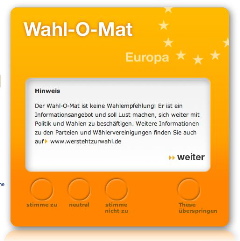 Für unentschlossene gibt es den “Wahl-O-Mat”, ein intelligentes Internetprogramm der Zentrale für politische Bildung, mit dessen Hilfe man auf Grund seiner Meinung zu politischen Grundfragen bestimmte Parteien empfohlen bekommt, die diese vertreten: http://www.wahl-o-mat.de/europawahl2009
