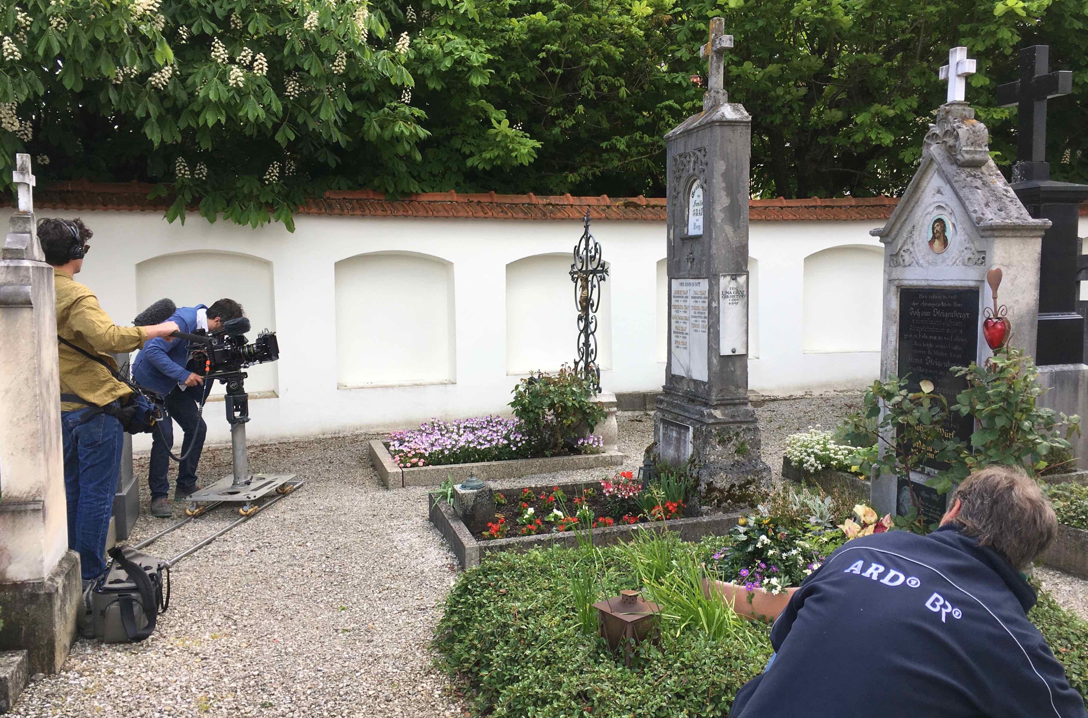 Oskar Maria Graf 1964 am Grab seiner Mutter … …. so wie über ein halbes Jahrhundert später das BR-Team