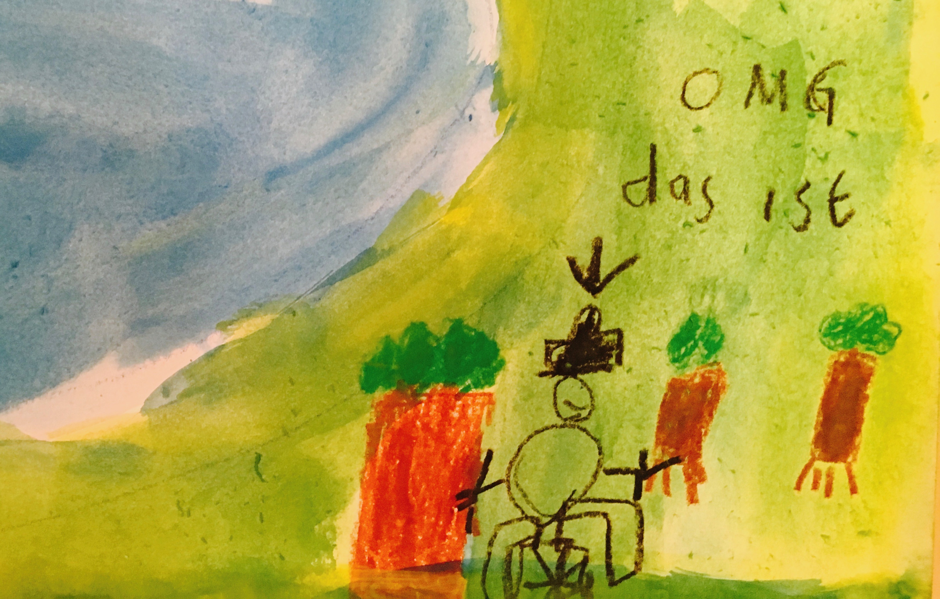 Oskar, die Lindenallee, der See: Erwachsenenglück: Kindermalerei