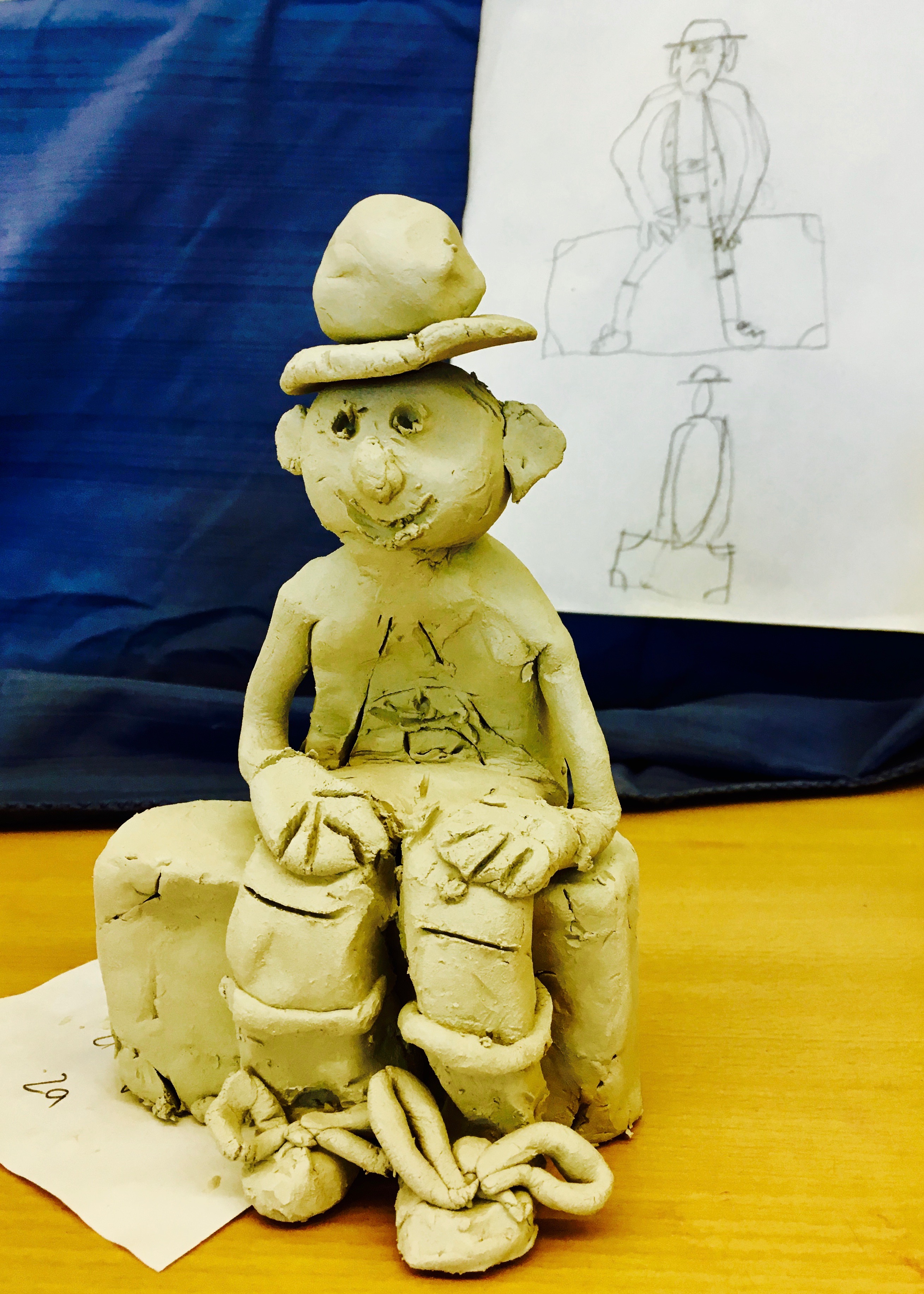 Eine für die zahlreichen Gäste besonders schön anzusehende Aktion gab es in der Klasse 2a, die das Oskar Maria Graf Denkmal in Aufkirchcen erst gemalt und dann nach den Skizzen in Ton geformt hat: